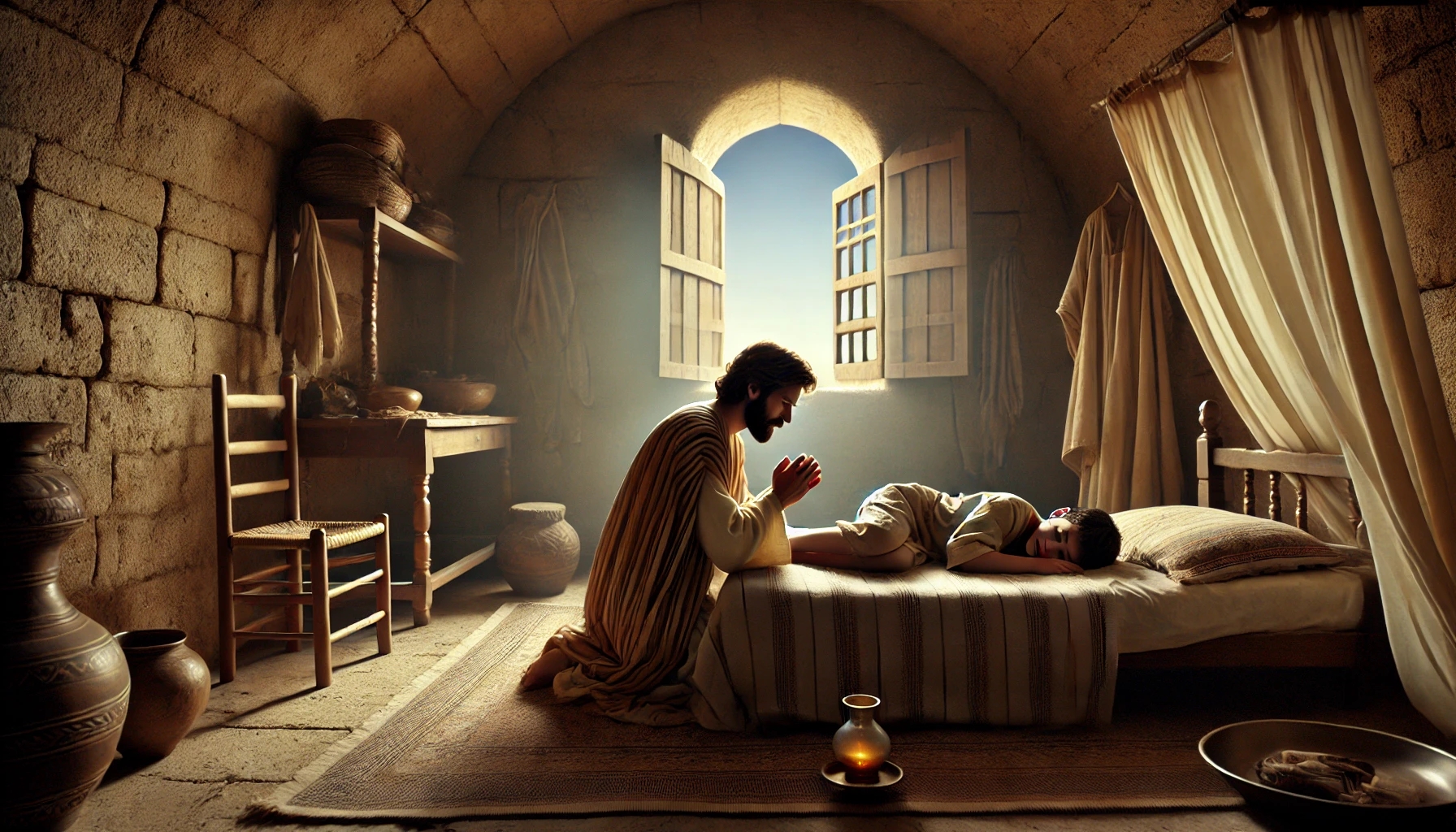 Eliseo entra lui stesso, chiude la porta e prega. Si stende sul bambino. Il corpo si riscalda. Il bambino starnutisce sette volte — e apre gli occhi. La vita ritorna.