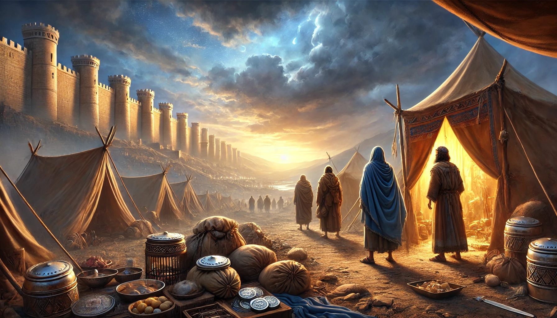Ritornano e riferiscono ai guardiani della porta ciò che hanno visto. All’inizio il re diffida della notizia e sospetta un inganno. Solo dopo un’attenta verifica diventa chiaro: il campo è davvero abbandonato. La notizia si diffonde come un incendio. La gente si precipita fuori e trova cibo in abbondanza. In una sola notte, la scarsità si trasforma in abbondanza — proprio come Eliseo aveva annunciato.