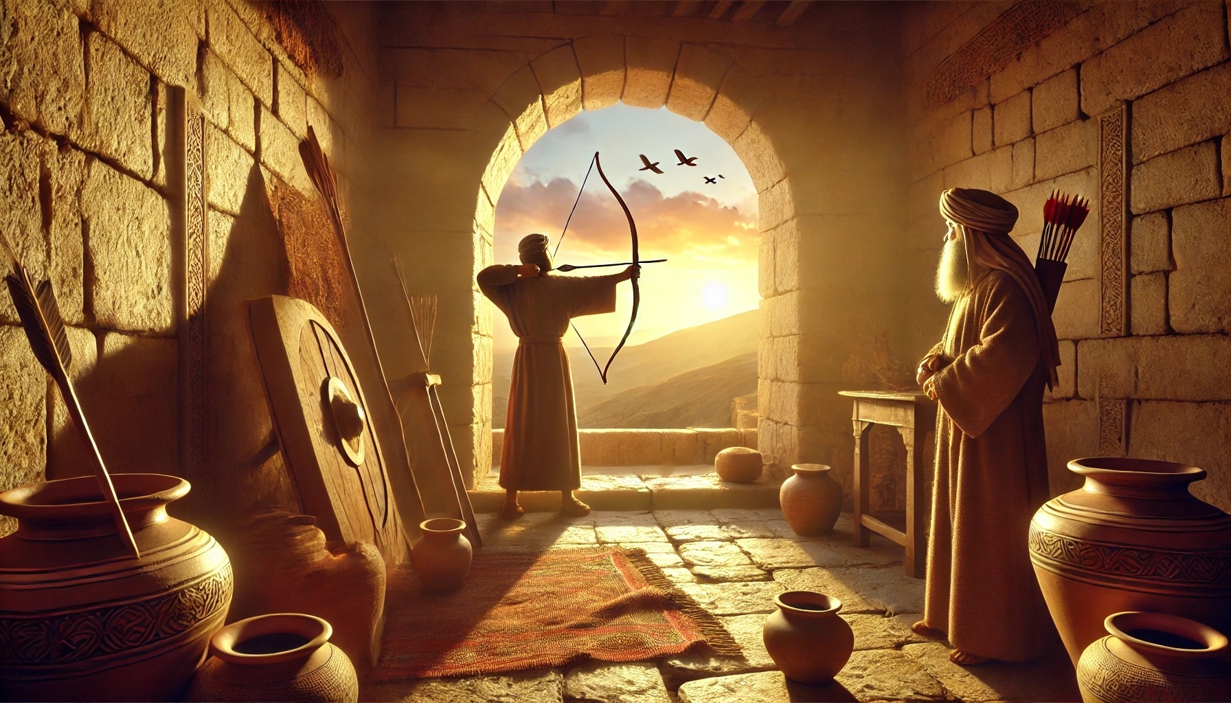 Eliseo dà al re un’ultima azione da compiere. Deve prendere un arco e scoccare una freccia verso oriente — segno delle future vittorie su Aram. Poi deve colpire il suolo con altre frecce. Ioas colpisce solo tre volte e poi si ferma. Eliseo si adira: se avesse colpito cinque o sei volte, la vittoria sarebbe stata completa. Ora ci saranno solo successi limitati.