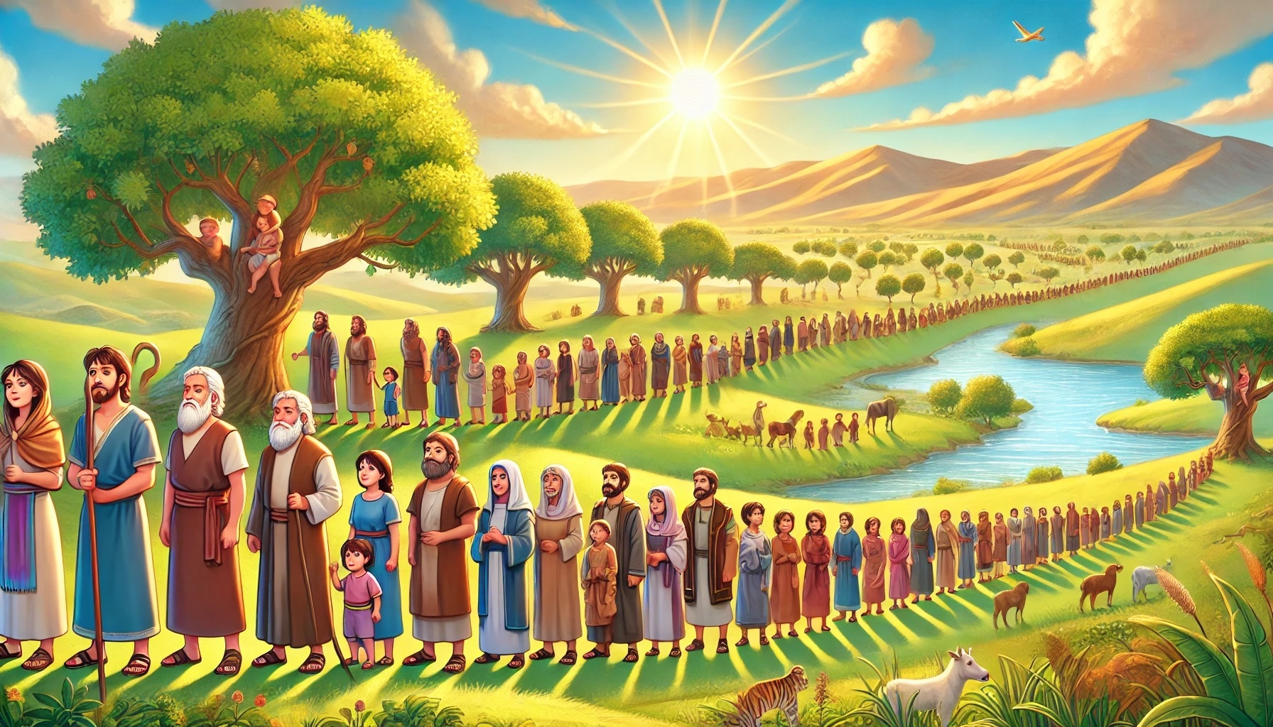 La storia inizia con Adamo, continua con Noè e i suoi figli, e arriva infine ad Abramo e alla sua famiglia.