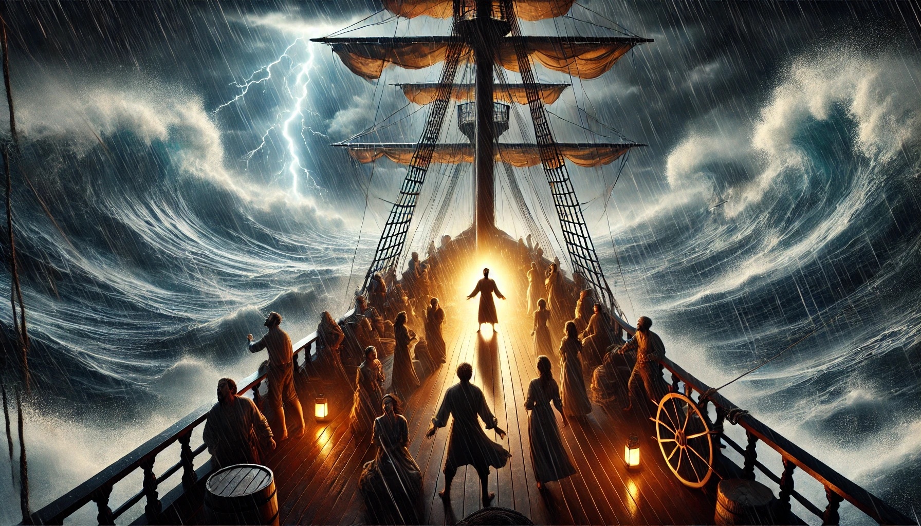 In quella notte sul mare, un viaggio si trasformò in una crisi interiore. Il vento inizialmente era aumentato solo leggermente, ma in poco tempo il lieve mormorio si trasformò in una tempesta che scuoteva la nave. Le onde colpivano incessantemente lo scafo, il legno scricchiolava sotto la pressione e la situazione minacciava di sfuggire al controllo. Per molti a bordo divenne improvvisamente evidente quanto fosse fragile la loro vita.