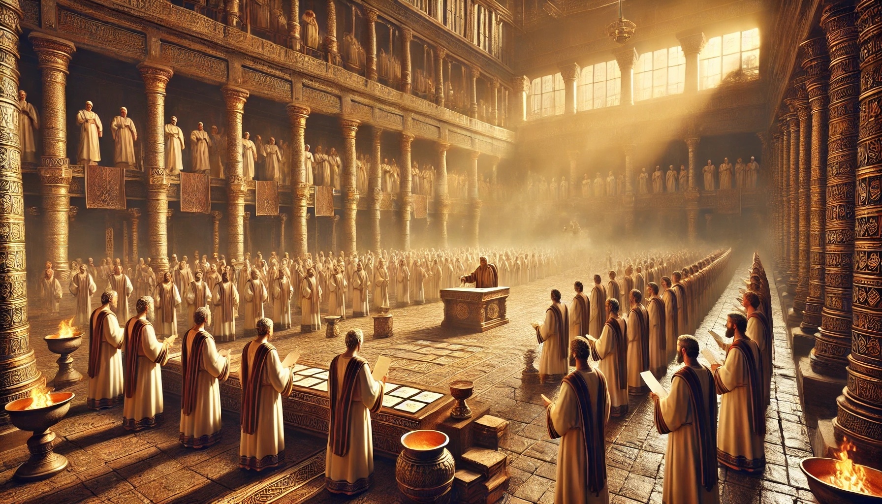 1 Cronache capitolo 24 descrive la suddivisione dei sacerdoti in diversi gruppi di servizio. È un capitolo sulla struttura, la giustizia e l’importanza dell’ordine nella vita spirituale.