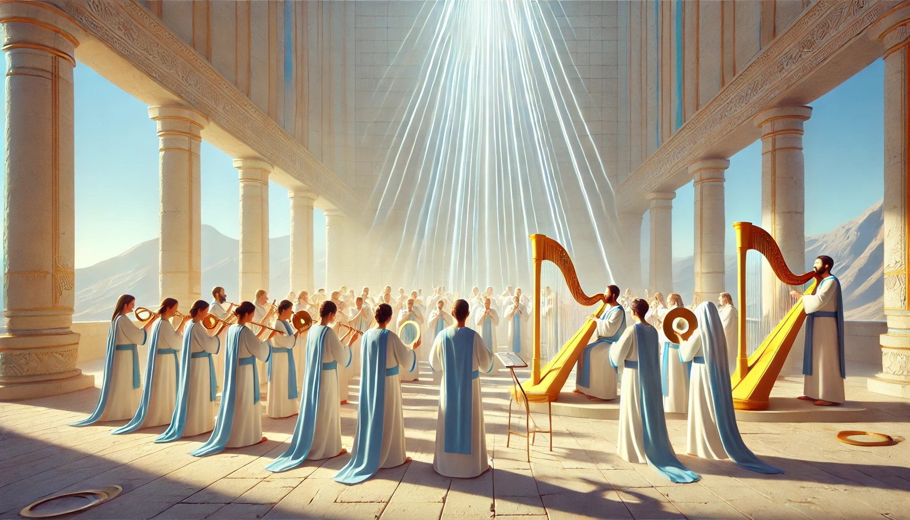 L’atmosfera di questo capitolo è diversa — quasi udibile. Dopo tutte le disposizioni e suddivisioni, ora la musica passa in primo piano. Vengono scelti uomini la cui missione è servire Dio con il canto e gli strumenti.