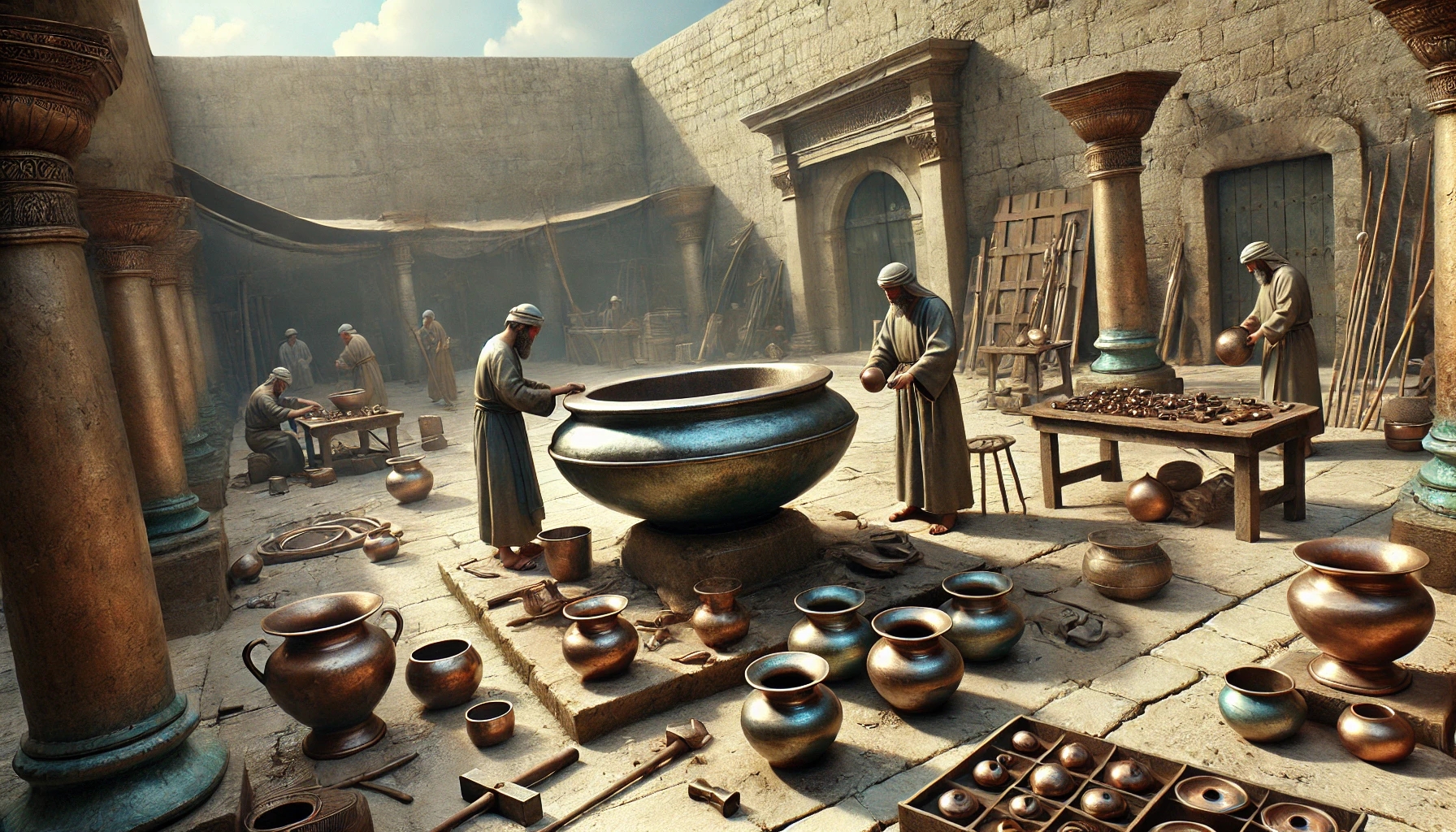Il tempio è in piedi – ma non è ancora completo. Ora si tratta di riempirlo di vita. Utensili, altari, vasche, candelabri – tutto viene realizzato e collocato al suo posto.