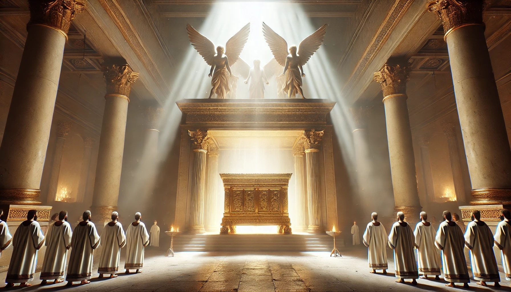 Tutto è pronto. Il tempio è costruito, gli oggetti sono al loro posto. Ora arriva il momento decisivo: l’Arca dell’Alleanza, segno della presenza di Dio, viene portata nel Santo dei Santi.