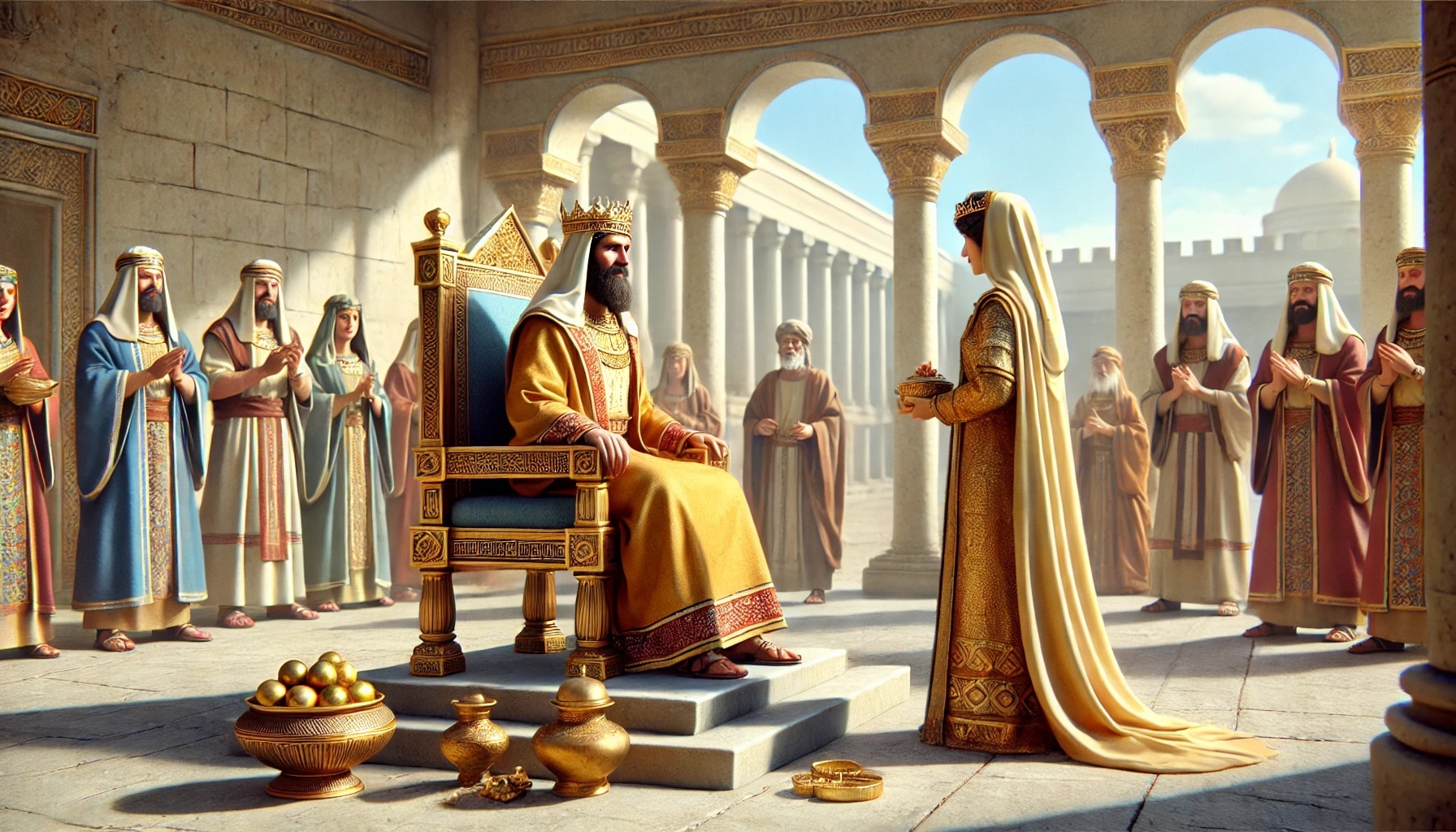 La scena inizia con una visita: la regina di Saba arriva a Gerusalemme. Ha sentito parlare della saggezza di Salomone, ma vuole vederla con i propri occhi. Porta con sé domande, forse anche dubbi.