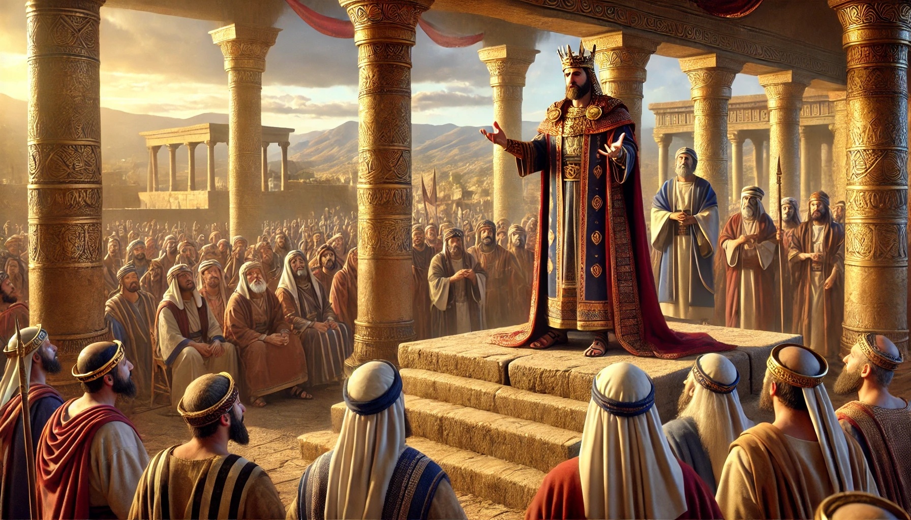 Il popolo si presenta a Roboamo con una richiesta: alleggerire i pesi che erano diventati gravosi sotto Salomone. Non è una ribellione, ma un desiderio di sollievo.