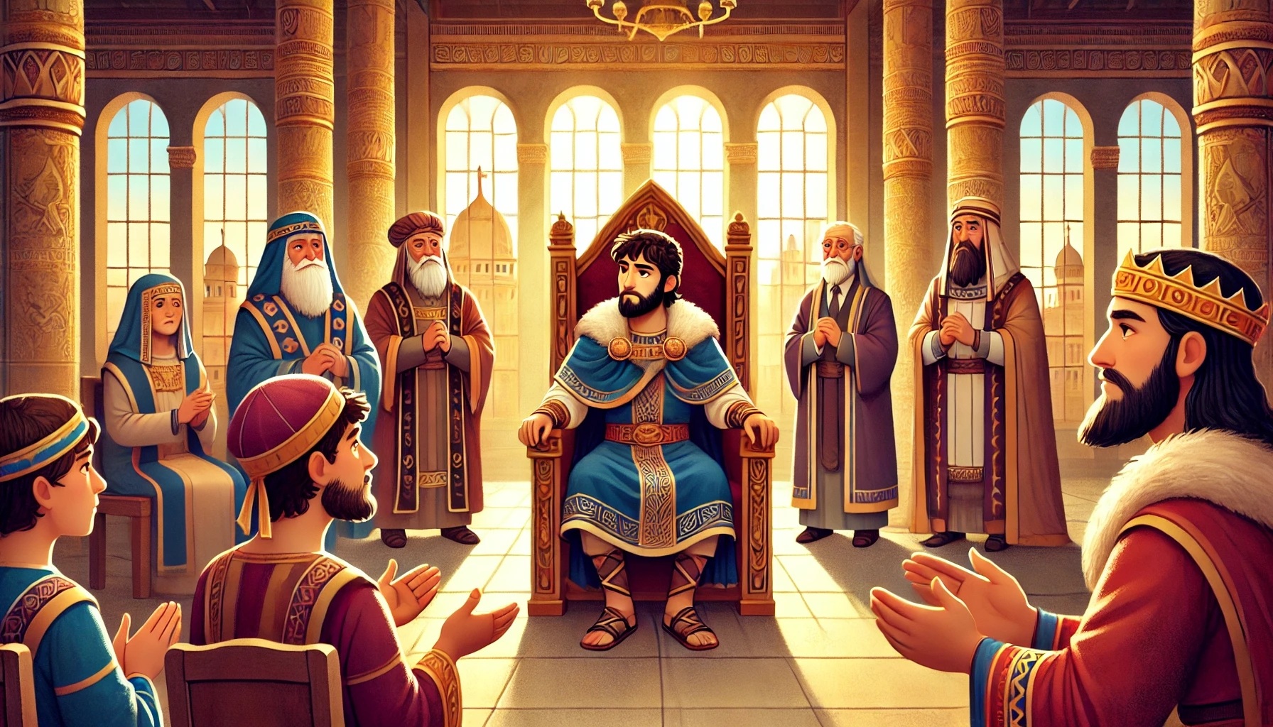 Ora Roboamo deve scegliere. Davanti a lui ci sono due consigli completamente diversi. Uno invita alla gentilezza e alla comprensione. L’altro punta sulla durezza e sul potere.