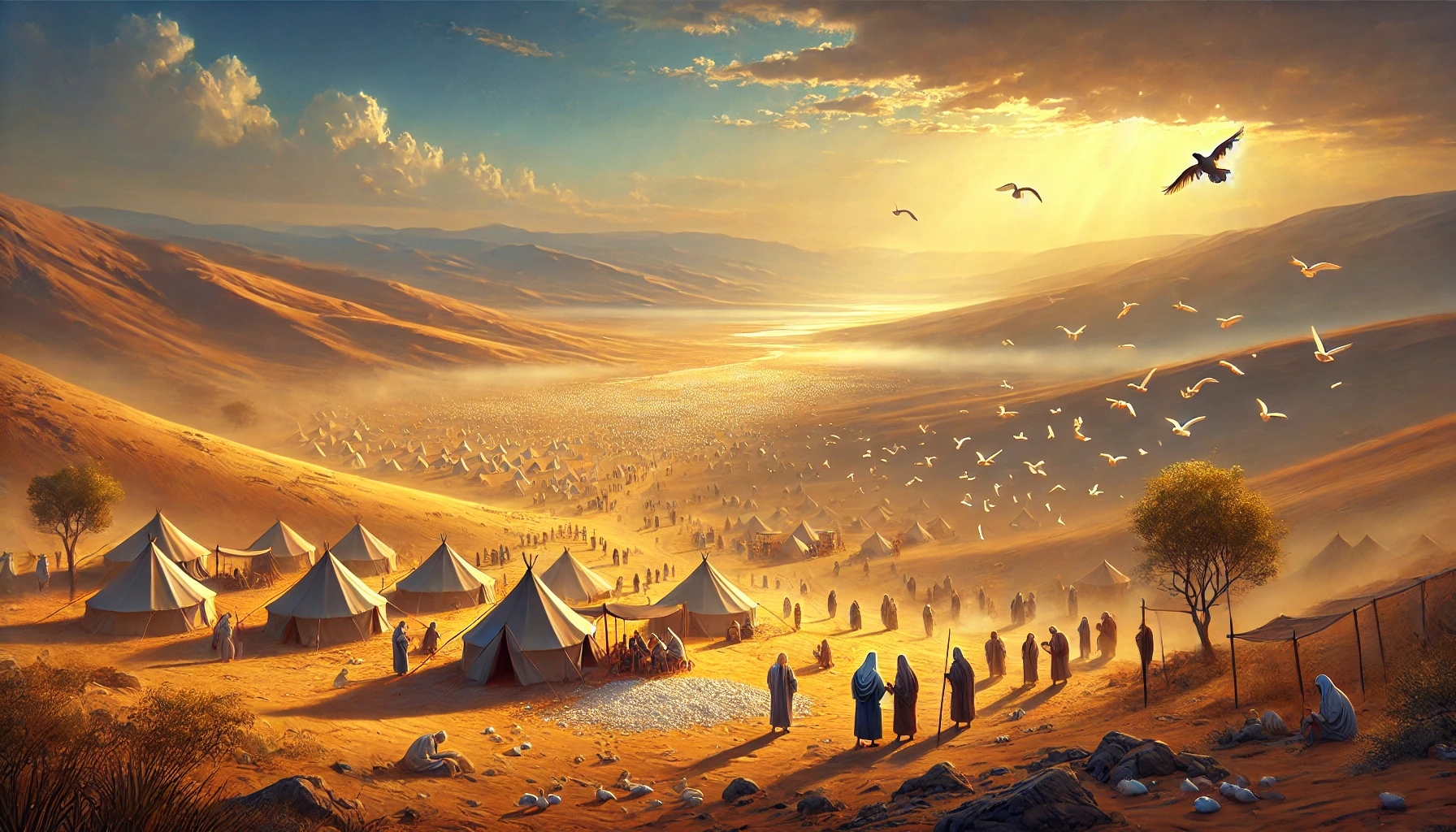 Dio non risponde con castighi, ma con pazienza. Promette la manna e le quaglie – cibo dal cielo. Ma collega questa provvidenza a una prova: raccoglieranno solo ciò che serve per un giorno. Attraverso questo, Dio vuole mettere alla prova la loro fiducia.